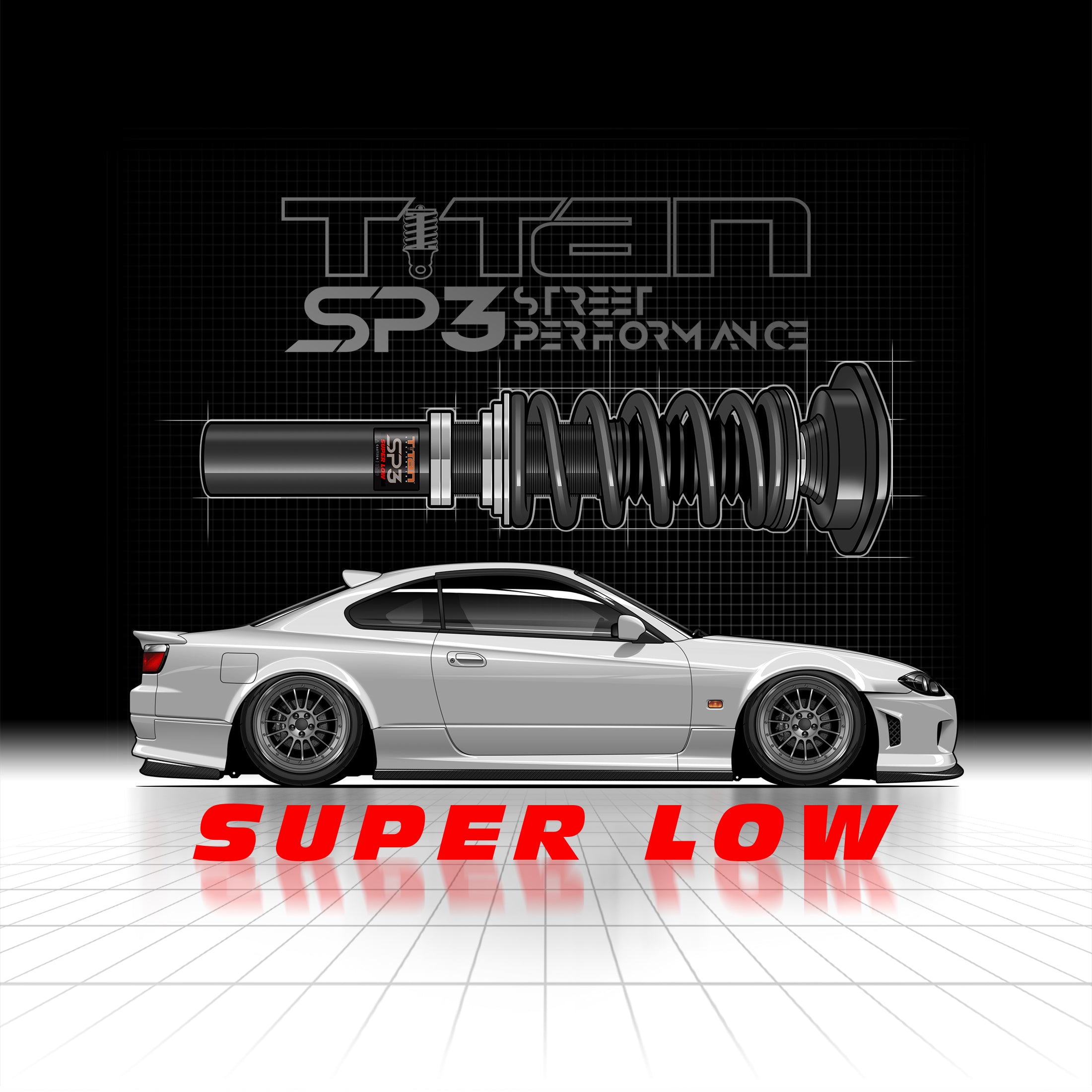 For those looking to enhance the looks of their vehicle by having a substantial ride height drop, our TITAN SP-3 'SUPER LOW' Coilover kit is perfect for you. This kit is a great alternative to Air Suspension at a fraction of the price, keeping your build costs down. With the TITAN SP-3 'SUPER LOW' kit, the vehicle ride height can be lowered 50mm - 100mm from factory ride height (varies per application). Our TITAN SP-3 'SUPER LOW' kit offers an additional 30mm drop over the TITAN SP-3 kit. Expect an 80mm - 130mm drop from factory ride height (depending on the application).